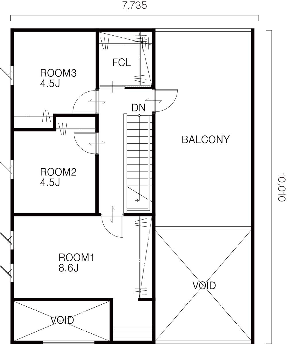 4.5帖のシンプルな子ども部屋。 廊下に2帖のファミリークローゼットを配置し、 家族の収納を一括管理することでそれぞれのプライベートスペースをスッキリ保つことができます。