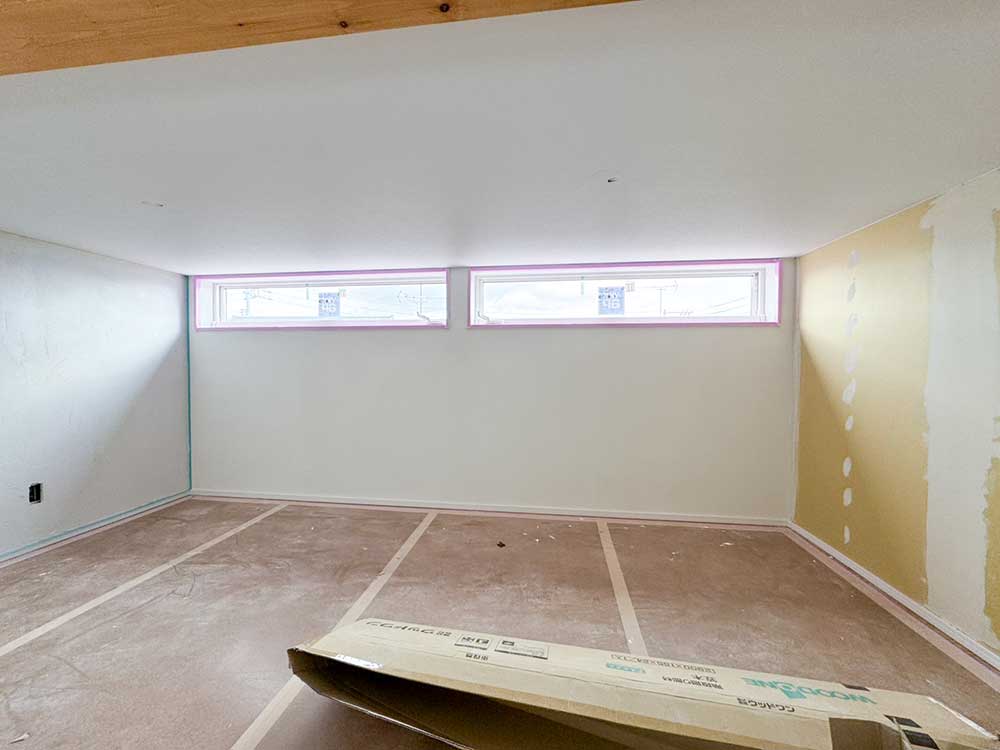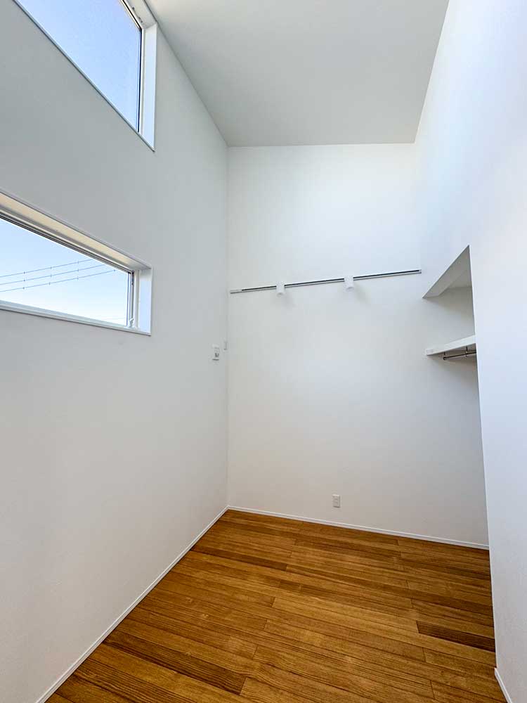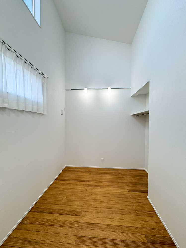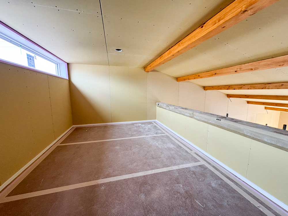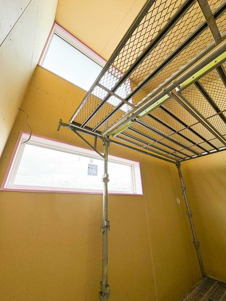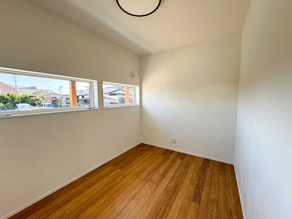 勾配天井を活かした吹き抜け空間。高窓から光が差し込み、 4.4帖とは思えない開放感と明るさを感じられます。