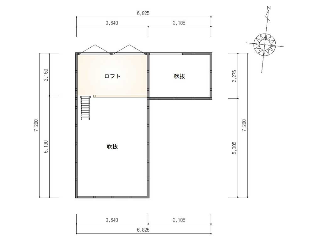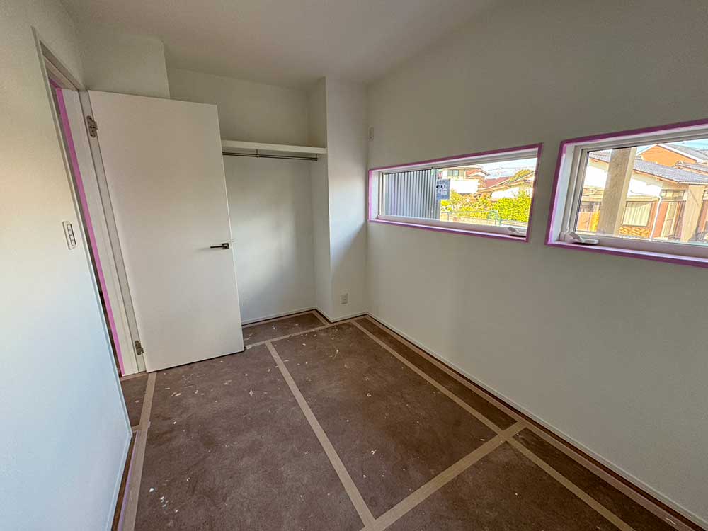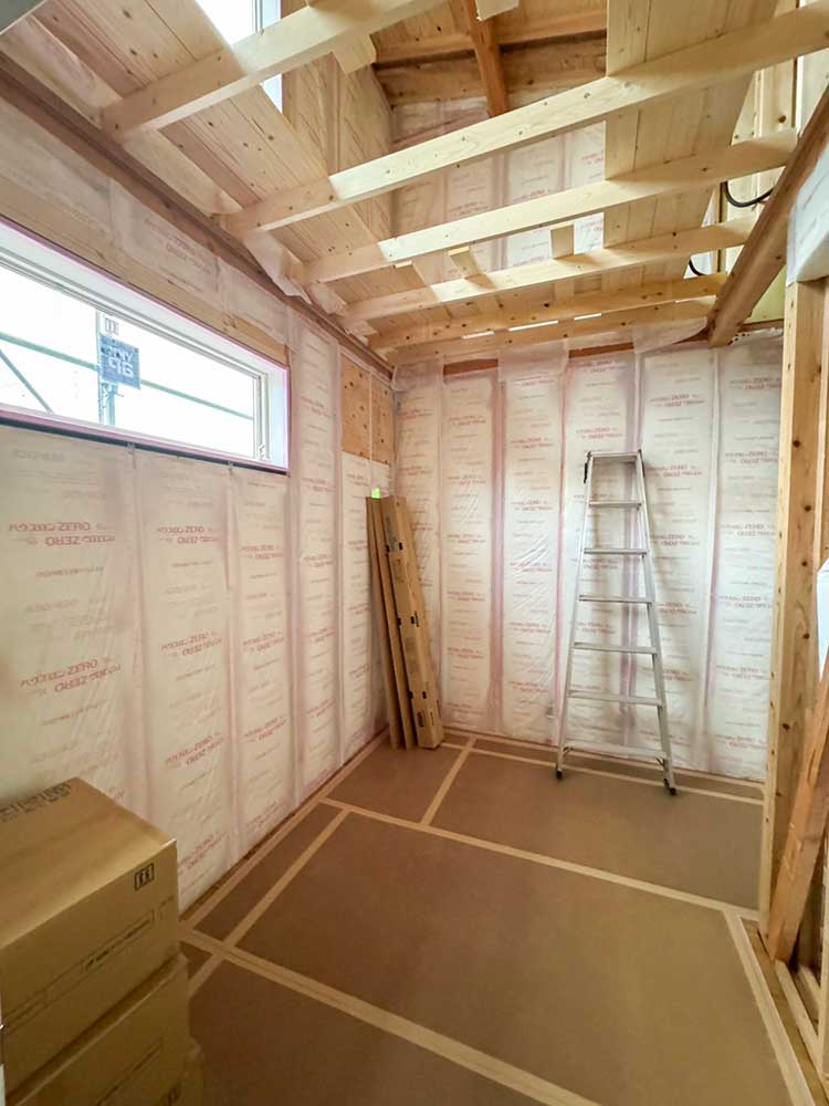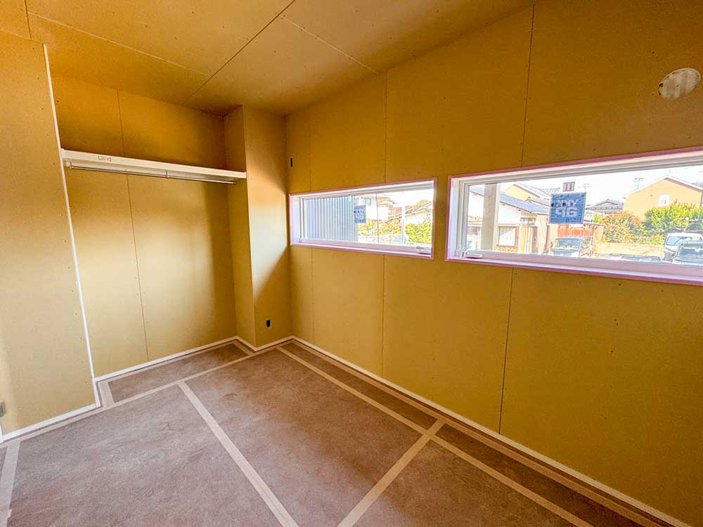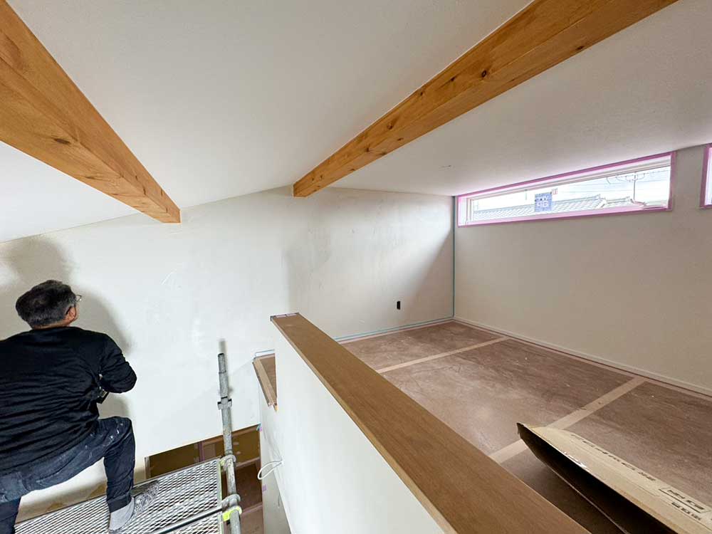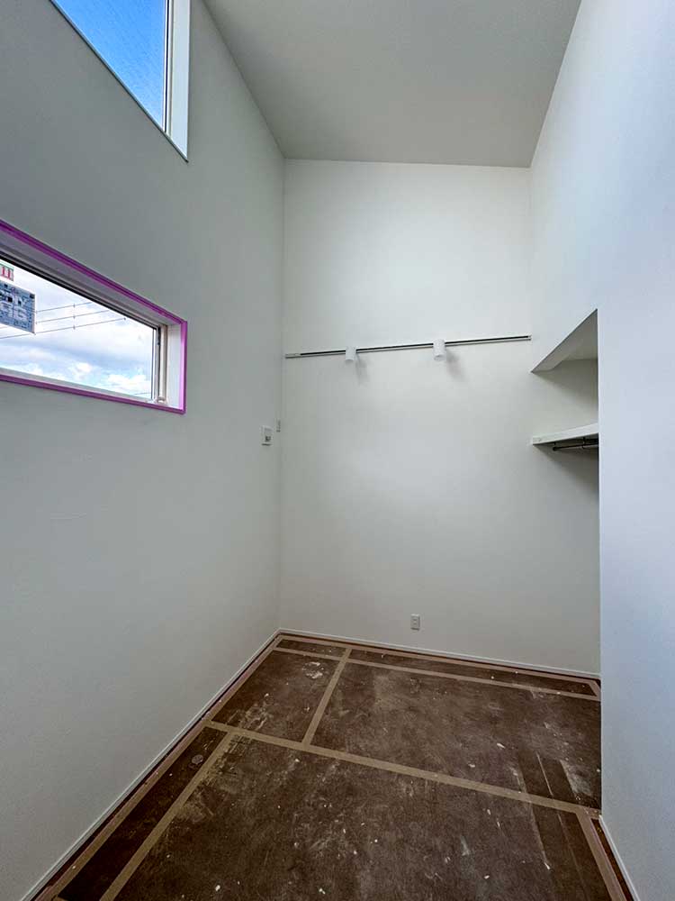 勾配天井を活かした吹き抜け空間。高窓から光が差し込み、 4.4帖とは思えない開放感と明るさを感じられます。