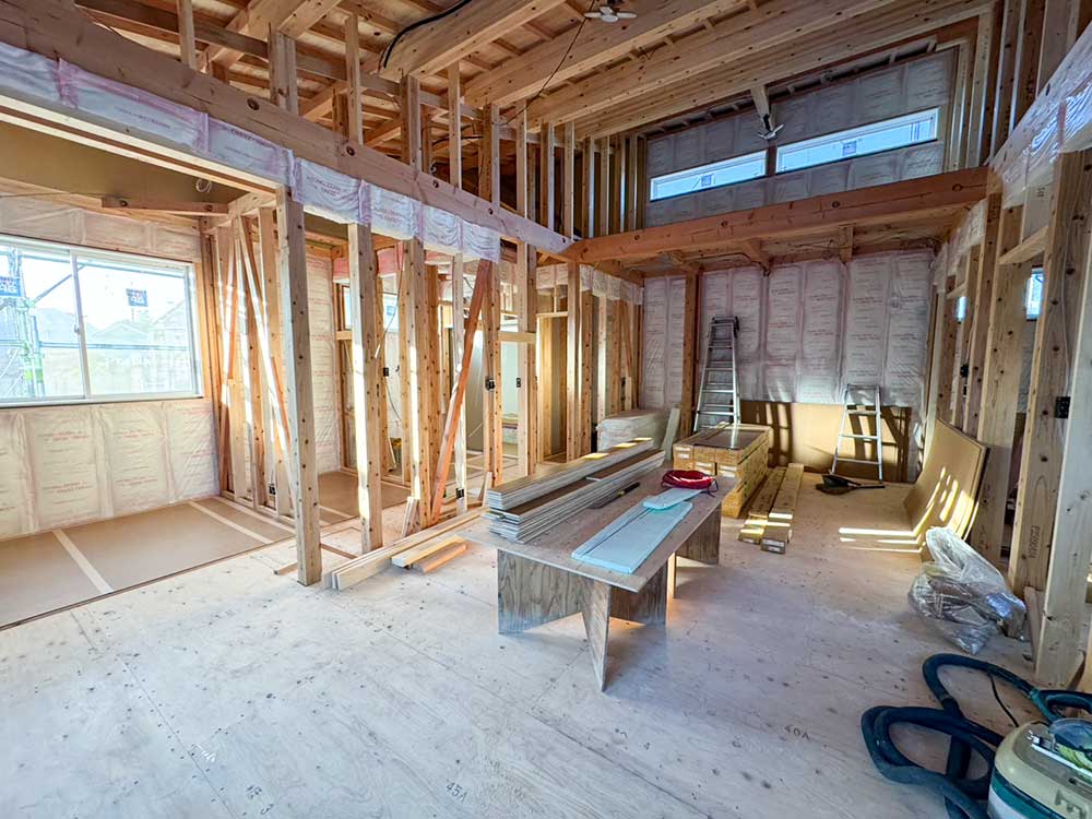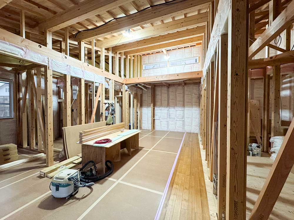 開放的なリビング・ダイニング・キッチン。家族が自然と集まり、コミュニケーションが弾む空間です。